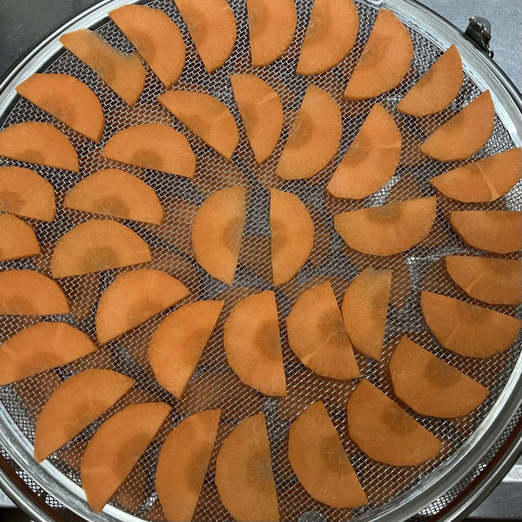 干しかご自体は100均でも買えるので前々から干し野菜を作っていたのですが、かごが洗いづらいので衛生面が気になって長続きしませんでした。これはステンレス製でガシガシ洗えるのでお勧めです。