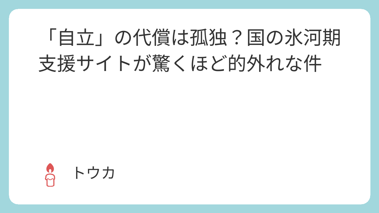 自立しているから支援は不要? 自立しているから問題ないとでも思ってる?