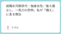 これは、私と母の「よくある母娘のしょーもない小競り合い」を見た叔母がちょっとカチンと来て私に対して言ってしまっただけで、叔母だけが悪いのではない。…という前置きをした上で、忘れられない出来事があります。