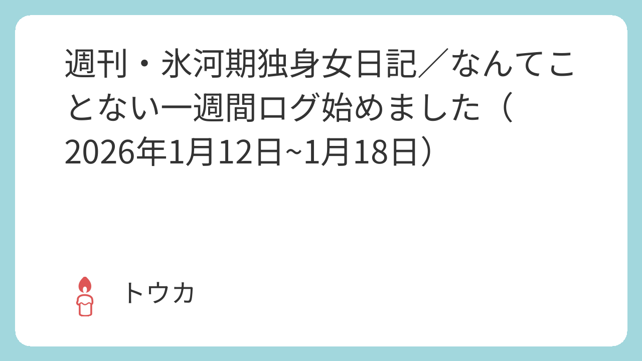 なんてことない一週間ログ「週刊・氷河期独身女日記」始めました。