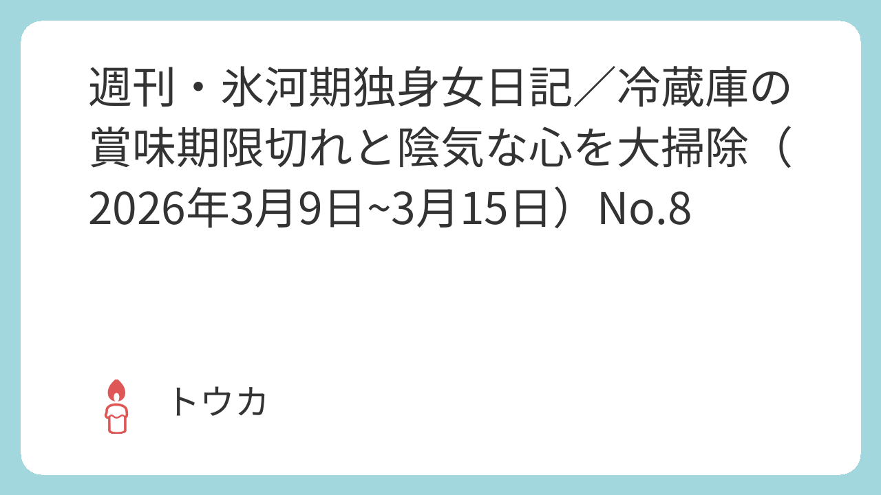 なんてことない一週間ログ「週刊・氷河期独身女日記」。