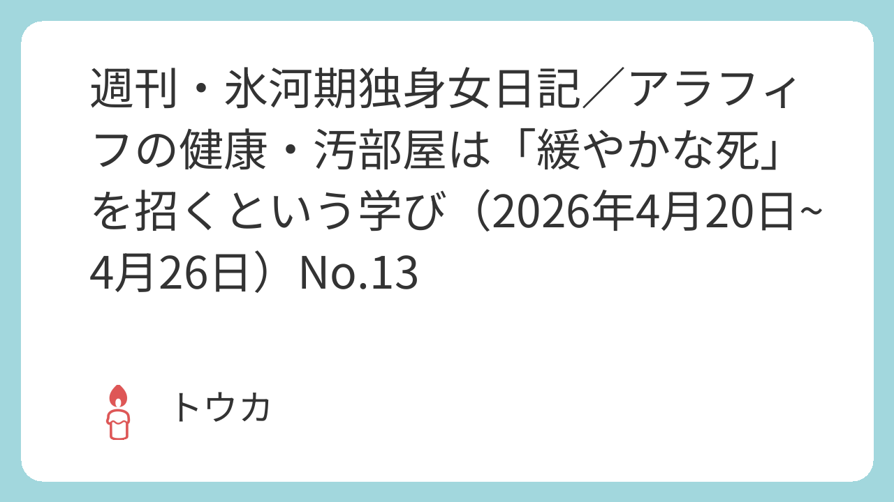 週刊・氷河期独身女日記/アラフィフの健康・汚部屋は「緩やかな死」を招くという学び(2026年4月20日~4月26日)No.13